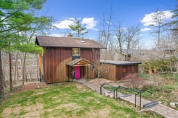 Mid-Century Modern home designed by Robert Metcalf meets everyday livability on Ann Arbor's sought-after north side. This 1960 two-story with basement features 4 bedrooms, 3 full baths (one on every level), & 1,843 sq ft of sun-filled living space. Natural light pours into the living room (with fireplace) & dining area (both with hardwood floors) & into the galley kitchen which looks out onto the front patio. Entry-level bedroom with ensuite bath & stacked laundry connects to a playroom/office space off the dining room & kitchen. Convenient, versatile layout for everyday living. Upstairs, three carpeted bedrooms share a full bath. Finished basement with picture window opens to the rear patio & offers flexible living space with a rec room & a non-conforming bedroom that can be used as a guest room or office. Relax on the screened-in, covered deck while enjoying views of your terraced backyard. Just minutes to downtown Ann Arbor, US-23, & steps from Argo Pond and the B2B Trail.